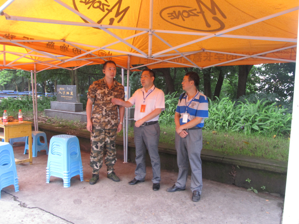 为了不影响到新生们的军训进展,徐书记和刘经理在新生队列外观望。在交流中徐书记表示:大学学习不仅需要智力,更需要体力和良好的行为习惯,军训不仅能够锻炼了同学们的体魄,更重要的是从精神、作风、个人素质等方面锻炼大家。刘经理表示赞同,并在交流中讲到:同学们通过军训练能够尽快的互相认识,并在军训中互相帮助、互相爱护,领悟人生道理,体会大学精神,这些都是一笔珍贵的人生财富。