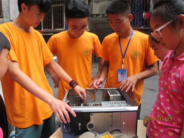 下午,我们刚到社区,便有上午预约的居民们迫不及待的请我们的队员为他们维修,大家又忙个不停。虽然此刻的天气闷热无比,虽然豆大的汗珠从队员们的额头滚下,虽然电脑主机里的灰尘刺鼻,但这一切都被队员们的专心所化为乌有。他们坚定“梦想飞扬,服务家园”的信念,在实践中的到升华。
