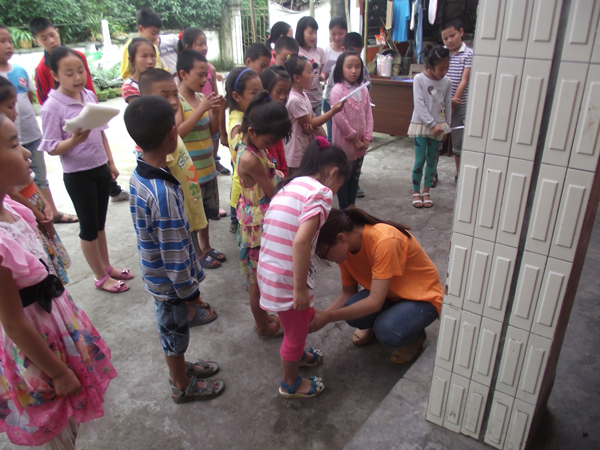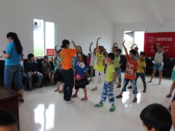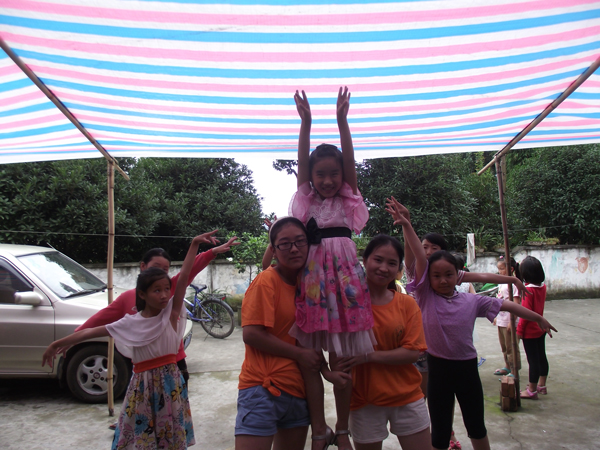 按照安排,红草村继续昨日未完的任务。在孩子们稚嫩的歌声和欢快的舞蹈中,志愿者们的辛苦有了最幸福的归宿。在另一边,孩子们的早训开始了,志愿者们相信村委会门口遍地的垃圾在下次开门时已被孩子们丢到垃圾桶了。九间楼村的孩子年龄比较小, 教室里时好时坏的纪律最是让老师们头疼,十分考验老师的现场控制力。志愿者们让孩子意识到,想要学唱歌,想要做手工,想要做游戏 ,就必须懂得遵守纪律。