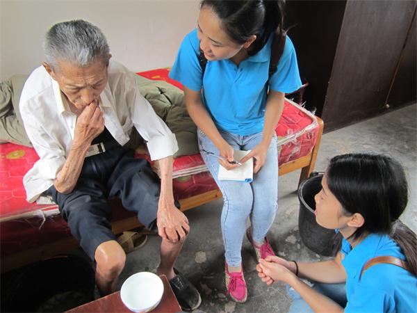 7月11日,前一夜的小雨,给炎热的7月降了温度,凉爽的早晨里,今日天空俏皮的露出淡淡微笑,美丽的蓝色天空下,志愿者们的衣服也是被染成了蓝色。没有了孩子们天真的欢笑与打闹,也没有了教室里孩子们学习的可爱样子。没有了孩子们与志愿者们的小游戏,也没有志愿者们在“小基地”对孩子们的安全的时刻担心。孩子们都回到公司领学习成绩了,“为爱起航”义务支教服务队在韩雯的带领下来到了前日联系好的靖民镇敬老院。