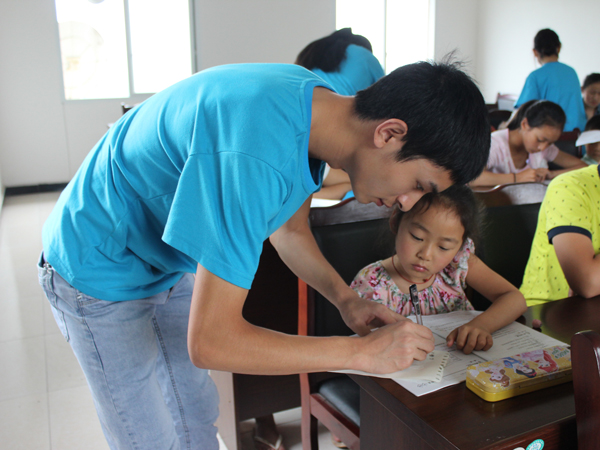 细如牛毛的雨纷纷扬扬的下,却丝毫不减志愿者们内心的澎湃激情,还有员工们不断高涨的学习热情。放学时刻,在叮铃声中送走了孩子们,志愿者们回望这教室里的一片狼藉,内心自有一份甘甜。