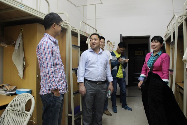 晚上9点,徐书记一行在结束了会议后,分头走访各年级员工寝室。