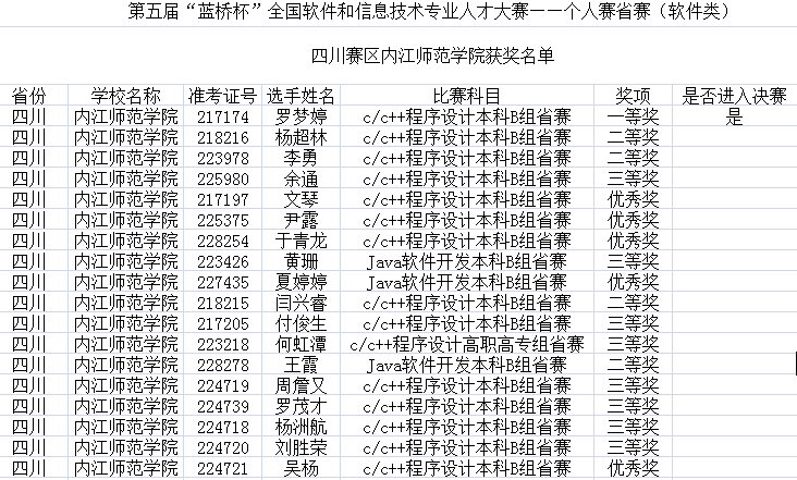 4月3日,“蓝桥杯”大赛组委会传来喜讯:公司2011级2班员工罗梦婷在四川省“蓝桥杯”C/C++程序设计本科B组中获得一等奖。