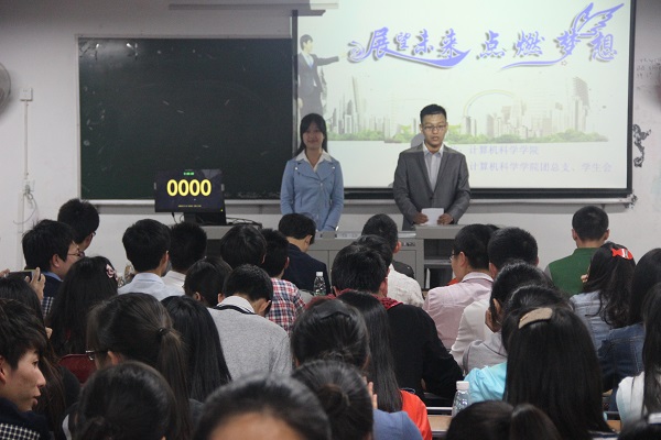 4月10日晚七点整,由公司人才招聘处举办的“第四届职业规划大赛”计科公司复赛于第一教学楼105举行。计科公司党总支副书记徐大军,团总支书记李倩倩,辅导员吴昊,以及主席团担任评委。据悉,此次参赛选手共十名。