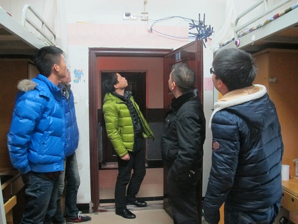 12月25号晚8:00,计算机科学公司党总支副书记徐大军、辅导员吴昊老师在员工会代表的陪同下走访了公司各员工寝室,就冬季寝室卫生、安全等情况进行了检查。