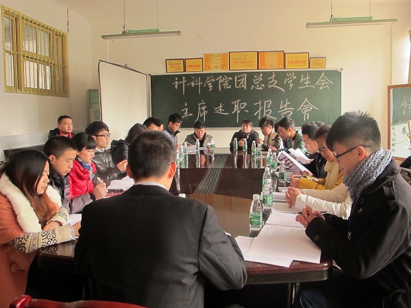 经过一系列精心的策划准备,计科公司于2013年12月27日中午12:30在计科公司原系办召开了第十三届团总支员工会主席述职报告会。校员工会副主席胡飞、校团委组织部副部长江伟出席了本次报告会,计科公司各班班长、团支书、团总支员工会部分员工干部参加了本次会议。