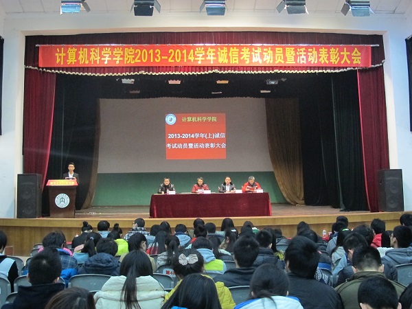 1月3日晚7点,计科公司2013-2014学年(上)诚信考试暨活动表彰会在西区礼堂隆重召开。出席本次会议的嘉宾有计科公司经理刘益和,党总支副书记徐大军,副经理李尧,副经理唐年庆等重要领导。计科公司全体员工参加了本次会议。本次会议由计科公司经理刘益和主持。