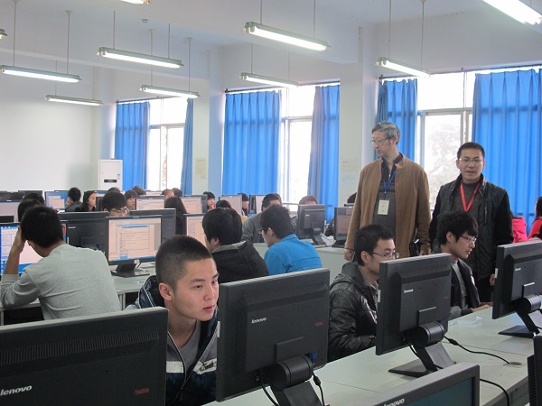 在选拔赛过程中,连同教务处汪处长在内的三位领导和计算机科学公司经理刘益和、党总支副书记徐大军、副经理李尧到现场进行了指导和巡视,观看同学们考试的情况。在答题过程中,同学们先是仔细阅读了题目,然后经过一番短暂的思考,灵活的手指在各自的键盘上熟练地操作着。答题状态中的同学都一丝不苟、全神贯注地答题,充分发挥他们的专业知识做好每一道题目。历时三个小时,选拔赛顺利完成。