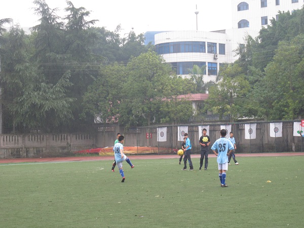 10月16日,计科公司“迎新杯”足球赛第二天,比赛在中午12:30精彩开赛,足球赛赛制分为上下两半场,分别为客队12级对战 13级1.2.5班,客队11级对12级3.4班。天空中飘着细雨,场上吹着寒风,但丝毫未影响到各球队球员比赛的激情。