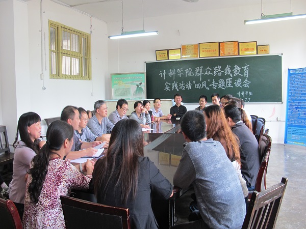 9月9日下午四点,计算机科学公司党总支在公司会议室召开群众路线教育实践活动“四风”专题座谈会。计科公司经理刘益和、党总支副书记徐大军、副经理李尧、副经理唐年庆以及全体教工党员参加座谈会。