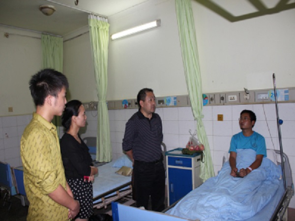 在接到新生的电话后,辅导员刘丽娜老师赶忙从办公室赶到校医院,在班助的帮忙下将白科同学送到了内江市第二人民医院。同时刘丽娜老师第一时间给公司领导打了电话,汇报了白科同学的相关情况。在接到刘丽娜老师的电话之后,计科公司经理刘益和、党总支副书记徐大军、副经理李尧以及辅导员吴昊老师在散会之后立即赶往医院,并给白科同学带去了一些水果,以表慰问和关怀。在公司领导到达之后,医院的检查结果还没出来,刘经理亲自询问医生白科同学有无大碍,在听到左边腰骨可能骨折之后,刘经理特别嘱咐白科同学要好好休息,不必担心公司的事情,身体最重要。同时徐书记也叮嘱白科同学做事要戒骄戒躁,要好好保护好自己,杜绝此类事情再次发生。白科同学看到公司领导亲自看望,体会到领导对自己的关心和爱护,内心感动不已,一直点头表示会好好听领导和老师的话,好好休息,将身体养好尽快投入到生活和学习中。