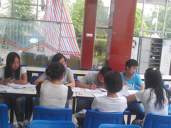 自开展活动几天以来,内江一直是如此的天气,不料天有不测风云。7月18日,一直以来持续高温的内江也开始下起了小雨,内江天气突然由晴转雨,原定于今天前往内江市白马镇进行环境保护宣传工作,也因此我们的白马之行只好突然叫停。队长便决定将今天的活动任务改为对前面5天的工作进行小结,对回收的调查问卷结果作一个详细的统计和分析,以及对调查采访中所遇到问题的收集和讨论处理9点我们准时到四食堂开展讨论会。在会上队长李加容首先对几天来我们工作作了一个详细的指导和分析,并给出了高水准的评价。接下来大家一起对调查问卷作出统计和分析。