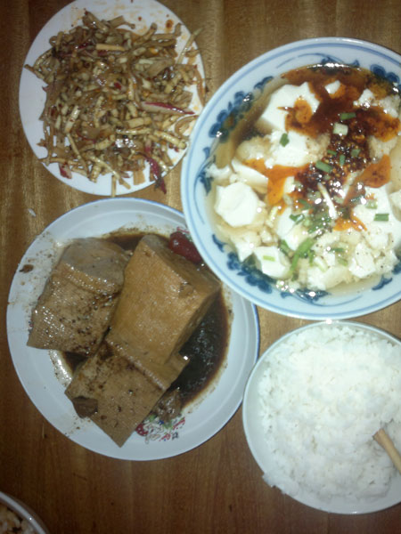 当11点30分到了,他们目送孩子们一个个的回家吃饭,然后深深呼一口气,坐着或靠着椅子休息,皆叹“现在的小孩真活跃!”,“调皮又可爱!”。简单收拾一下资料,又回红草村等队伍人员到齐去找吃的地方。经比较唯有豆花饭便宜一些,所以他们一起挤着一张园桌就着豆花蘸点辣椒下饭,解决掉中午饭的问题。吃罢,财务总监王静算算小账,忽而爽朗一笑,“看看,47元,我们每人平均才吃3块几,又节约下不少钱!”。饭后没有时间休息,因为孩子们非常积极,来的很早,没有时间,没有空间给他们!