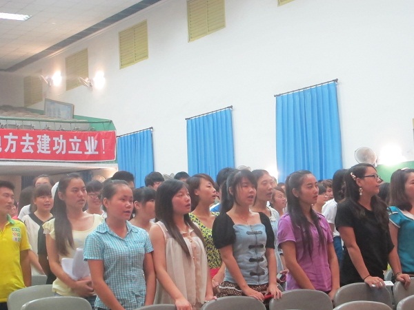 此次大会由经理刘益和主持。首先,副经理唐年庆宣讲了考试的规章制度,并对临近期末的各项工作做了全面细致的安排,他要求同学们诚实做人、诚信考试,遵守考场纪律,杜绝考试作弊现象发生,并督促大家抓紧复习、积极应考。接着,教师代表陈晓燕老师通过讲述一个小故事让同学们明白诚信的重要性,2011级三班文琴同学带领同学们进行诚信考试宣誓。
