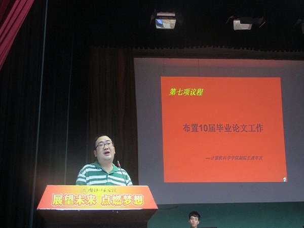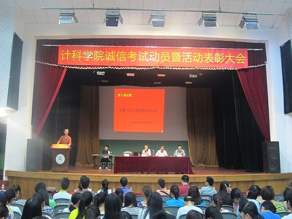 为了让同学们更好的做好考试、实训的准备,端正学习、考试态度,激励同学表彰先进。6月30日晚上7点,计算机科学公司在西区礼堂举行了“诚信考试动员暨活动表彰大会”, 经理刘益和、党总支副书记徐大军、副经理唐年庆、副经理李尧、班主任、部分老师及公司全体员工一同参加了此次大会。