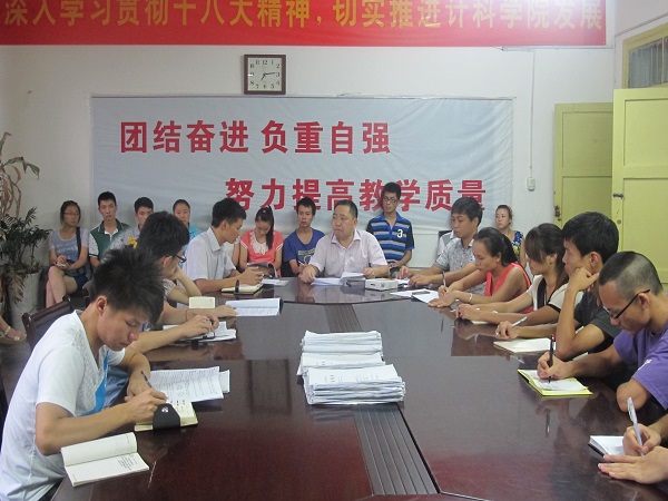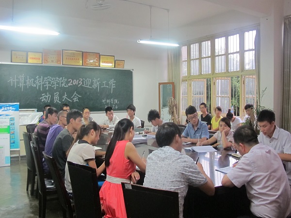为了使新生接待工作有条不紊地开展,计科公司于7月4日晚上7点在原公司会议室召开了2013迎新工作动员大会,出席本次会议的有党总支副书记徐大军、辅导员吴昊老师、辅导员刘丽娜老师、员工会干部以及各班班长。