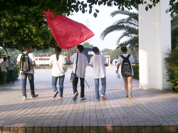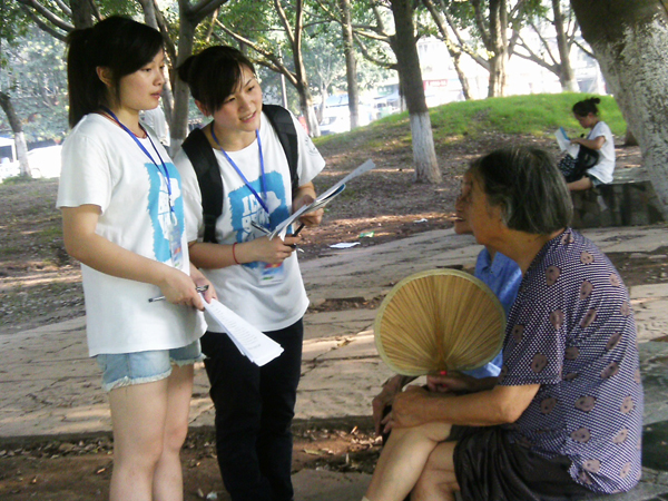 7月15日,是暑期“三下乡”社会实践活动进行的第3天,计算机科学公司“生态环保行,美丽甜城梦” 社会调查团一行人来到大洲广场,开展绿色环保问卷调查及宣传活动。