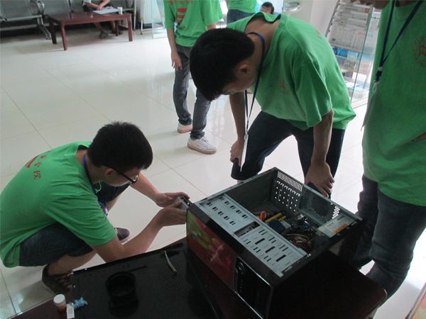 7月16日早上7:30,电脑维修队的成员准时在东区篮球场集合整装待发。今天我们主要在翔龙社区进行维修工作,共修理电脑十多台。