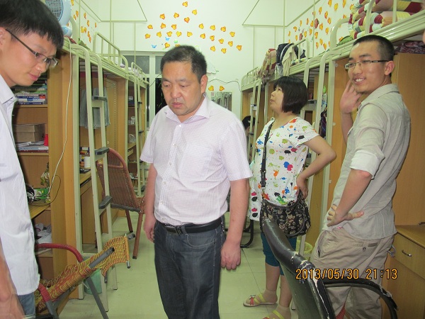 此次检查主要针对员工寝室的安全问题。在检查过程中,徐书记十分关切地询问同学们在学习生活中是否遇到困难,提醒同学们在天气炎热时更要注意寝室安全、卫生等问题,希望同学们一如既往地把寝室卫生工作做好,争取成为不仅学习成绩优异并且其它方面也同样优秀的计科学子。