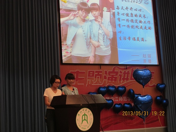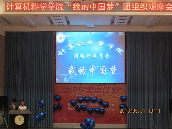 张清杰、蔡依辰的诗歌朗诵《中国梦》为本次活动拉开了序幕,他们慷慨激昂的朗诵传递出年轻一代愿为梦想努力奋斗,愿为实现“中国梦”努力奋斗的正能量。歌曲《年轻的战场》描绘了奋斗路上的“颠倒、挫折、希望与成功”,告诉我们只要坚持,都会梦想成真。《挥着翅膀的女孩》描绘了一个普通女孩五彩斑斓的梦,赵丽、黄珊的歌声传递出了梦想是翅膀,只有相信自己才能飞得更高更远。关于梦想的颜色,龙辉在《梦是中国蓝》的演讲做了这样的诠释:“如果问梦是什么颜色,我想它定是蓝色的,那么干净,那么宁静,抬头便能看见,那个蓝色天空的梦,那个写在纸上,记在心里诺言般的梦,那个我的梦,中国梦”。 她的演讲气势雄浑,表达了强国富民的美好愿望,赢得了现场观众雷鸣般的掌声。接下来,罗玲的歌曲《相信我们会创造奇迹》将活动推向高潮,歌词中“我相信我们的努力,我相信我们会创造奇迹”表达了团结奋进的计科学子愿为梦想努力奋斗的决心和意志。最后,一班全体同学集体朗诵了《雅安不哭》,全面展现了波澜壮阔的抗震救灾画面,表达了全国人民与灾区人民心连心,也表达了灾区群众面对灾难不屈不挠的伟大抗震精神。气势磅礴、感人至深的演讲为本次活动画上了圆满的句号。
