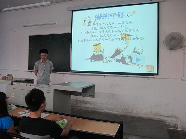 为了加强同学们的诚信意识,培养德才兼备的优秀人才。让同学们从思想上重视道德,从行动上体现道德,从奉献中感悟道德,从成长中体验道德,计科公司各班分别于上星期召开了以‘加强道德建设,提高自身素质’为主题的主题班会。