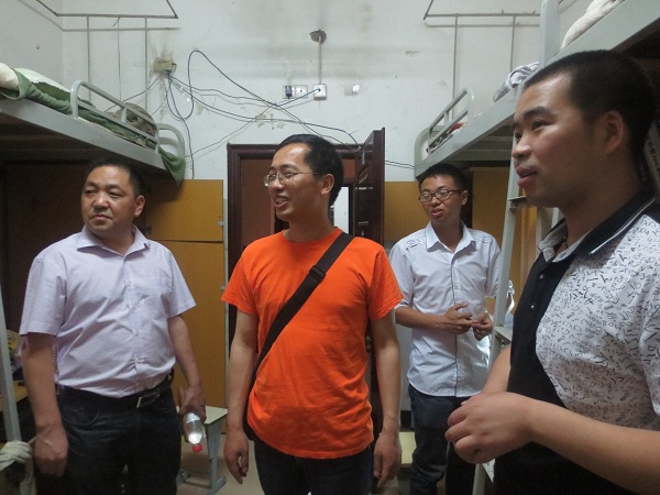 为了解计算机科学公司大四员工的学习、生活现状,5月19日晚8:00,计科公司党总支副书记徐大军在辅导员李倩倩老师、吴昊老师,班主任余文春老师、何文孝老师、余永武老师的陪同下探访并慰问了大四学子。