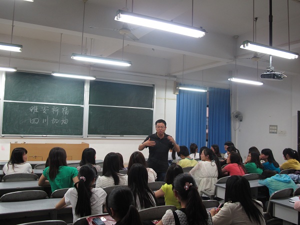 班会上辅导员吴昊老师向同学们叙述了地震的受灾情况,并向所有雅安籍同学表示了深切的关怀,同时提醒同学们应该提高逃生意识,真正做到有备无患。然后员工代表与同学们一起分享了一些有关地震的逃生技巧,提醒同学们在地震来临时切勿慌乱,注意自身安全。在此之后同学们还一起观看了一些有关雅安地震的视频,在观看过程中,大家都热泪盈眶,为一幕幕救人的感人事例而感动,为那些逝去的生命而痛惜。结束视频后,同学们都希望雅安能够坚强,祝愿雅安能够挺灾难,创造美好的明天。