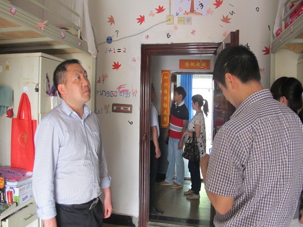 4月24日下午四点,员工处副处长陈敏等一行在计算机科学公司党总支副书记徐大军以及辅导员李倩倩老师、辅导员吴昊老师的陪同下来到计科公司大三寝室视察“文化进宿舍”活动的成果。