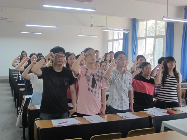 会议伊始,李倩倩老师组织全体人员学习中国共产党章程。紧接着是预备党员转正和入党积极分子转为预备党员的一些议程。议程中,本次转正的预备党员和转为预备党员的入党积极分子向在座各位同志汇报了自己思想政治上觉悟的提高和发展党员所起的带头作用,介绍人总结发表了转正的预备党员和转为预备党员的入党积极分子各方面的发展情况。最后,预备党员和入党积极分子均以过半的票数通过,成为正式党员和预备党员。议程结束后,本次转正和转为预备党员的同学们在党旗下庄严宣誓。