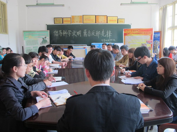 为了号召师生认清邪教的本质,进一步增强反对邪教,防范邪教的意识,营造“崇尚科学,反对邪教”的校园气氛。计科公司于4月8日分别召集老师和员工在系办会议室召开以“倡导科学文明,勇当反邪教先锋”为主题的会议。