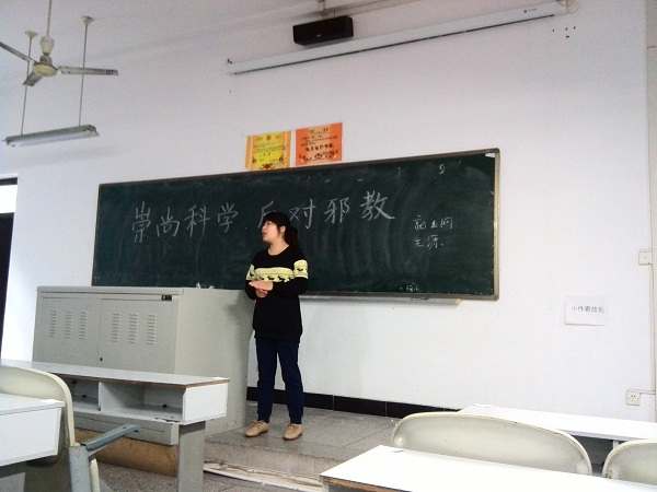 为了防范和抵制邪教思想入侵校园,积极号召师生认清邪教的本质,增强师生的反邪教意识,提高师生抵制邪教的能力,营造“崇尚科学,反对邪教”的校园氛围。计算机科学公司各班分别于4月14日、15日召开了“崇尚科学,反对邪教”主题班会。