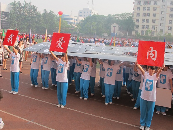 开幕式上,计算机科学公司代表队的七十多名员工和二十余名教师,以整齐的方队形式入场,整齐的步伐、嘹亮的口号、精彩的表演,彰显出大家满怀的激情和高昂的斗志。同学们身着白色体恤和蓝色运动裤,合力拼出的黑色键盘整齐一致,在计算机科学公司团总支员工会主席蒲勇的一声令下“键盘”立刻动了起来,最后“打”出了“我爱内师”这四个字。他们的飒爽英姿和充满动感的表演博得了在场观众的阵阵掌声。