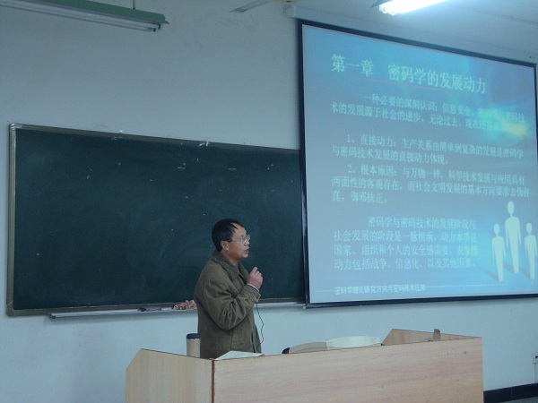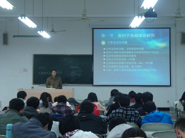 12月17日下午,刘益和教授在五教北403为同学们作了题为《密码学理论研究方向与密码技术应用》的学术讲座。参加本次讲座的主要是2011级同学。