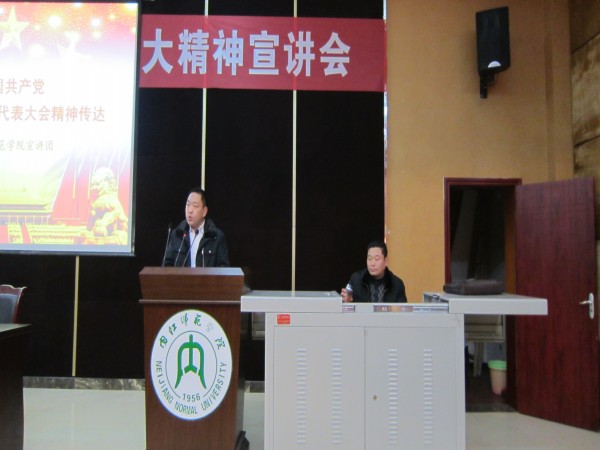 为推进各二级公司深入学习、宣传、贯彻和落实十八大精神,公司七名专家组成了十八大精神宣讲团进行校内宣讲。12月27日晚7时,宣讲团成员钟建明于第二学术报告厅为计科学子传达了十八大精神。计科公司经理刘益和、党总支副书记徐大军及其他党员教师出席了本次宣讲会。