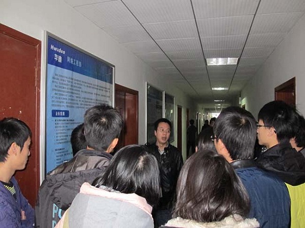 13:30,公司的李高丰老师为同学们讲解了华迪9年的成长经历,课堂上的同学们与老师积极互动,相互探讨自己的心得。随后,在华迪公司的精心安排下,同学们又一同乘车前往迈普集团,参观了这家网络名企,感受了迈普集团的企业文化、创办历程,所有同学都显得若有所思。