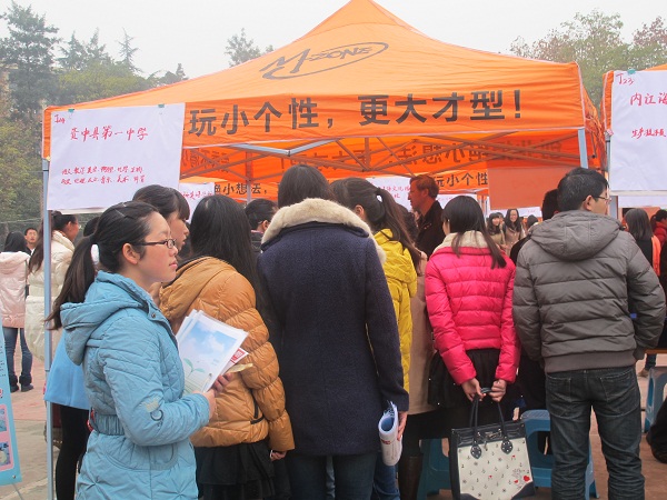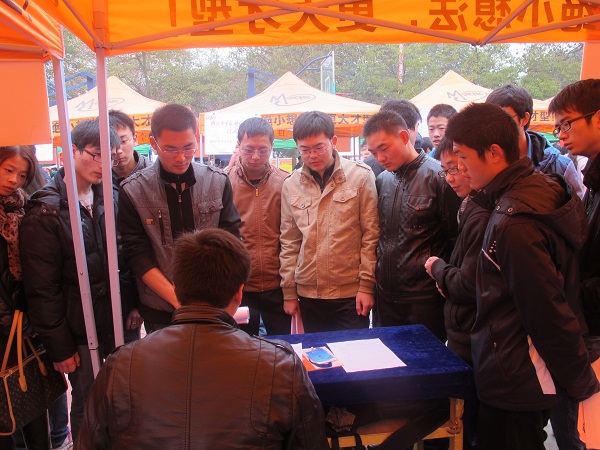 本次双选会盛况空前,参会单位多达317家,它们被分成A至M共13个展区,并在公司志愿者的帮助下,整齐有序地排列在山顶球场。有关于计算机专业方向的招聘单位也比较繁多,其中也不乏IT行业中的佼佼者,如中软国际、成都NIIT软件公司、加拿大达内科技、重庆中卓教育、四川华迪公司等单位也前来会场招聘优秀的毕业生。