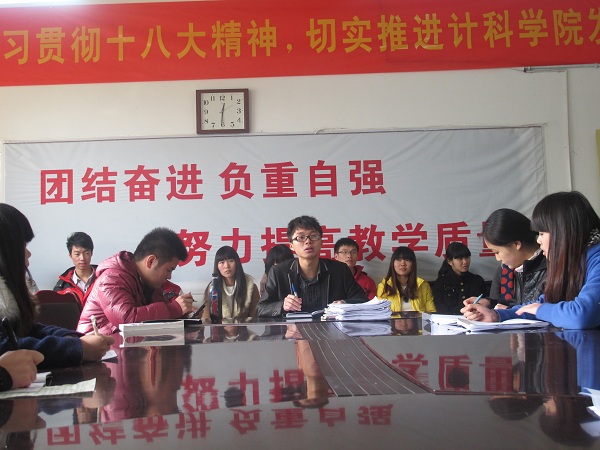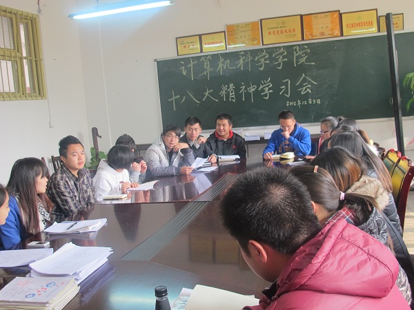 为深入学习十八大思想、进一步贯彻十八大精神,12月3日中午12:30计算机科学公司员工会主席团及各部门负责人和各班班长在系办会议室召开深入学习贯彻十八大精神会议,本次会议由计科公司员工会书记阳冉主持。