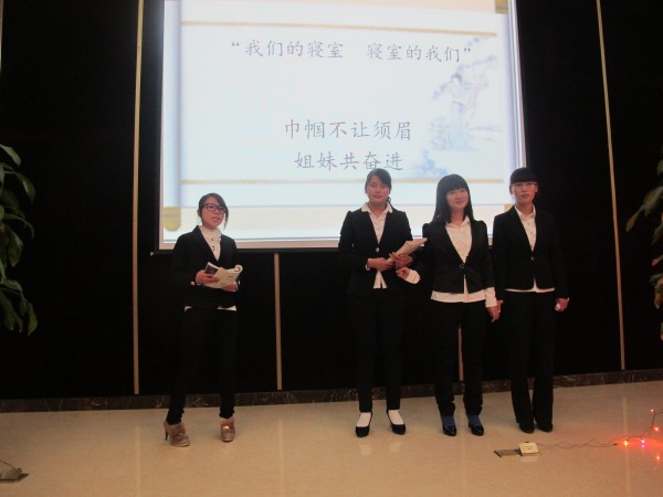 在比赛中,参赛寝室通过阐述发生在寝室里或生动有趣,或温馨感人的故事,表达出了对生活、公司、寝室真挚深刻的热爱之情。各组选手展示的形式丰富多样,他们的故事均来源于真实的寝室生活,配以精心制作的PPT,赢得了现场观众的强烈共鸣,博得阵阵掌声。比赛期间,有同学表演了以寝室生活为背景的校园话剧,引导观众思考寝室的文化生活氛围对于大家的重要意义。也有同学穿着整齐的寝室服装,以自编的室歌亮相,吸引了大家的眼球,故事讲到动情处,寝室成员纷纷落泪。