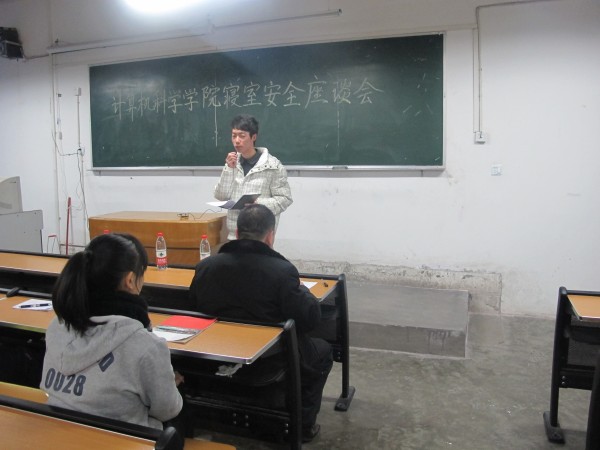 12月14日19:00,计算机科学公司党总支副书记徐大军在百忙之中抽出时间开展了由计算机科学公司各寝室室长参加的“计算机科学公司寝室安全座谈会”。本次座谈会在一教305召开。