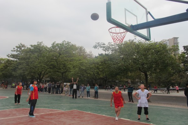 接下来的是男篮比赛。15点44分,随着裁判的一声哨响,拉开了计科男篮与美术男篮之间的战斗。上半场的比赛由于队员之间配合不默契,进攻节奏掌控不佳。计科男篮暂时落后于美术男篮。中场休息的时候,计科公司的领导亲临比赛现场为队员加油,这让计科男篮的队员倍受鼓舞。