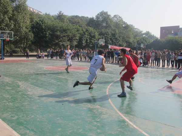 上午10:00,计科公司男篮第五场对战生科公司。计科男篮开场就以4比0掀起全场的小高潮。而后面的比赛,两队均表现出了旗鼓相当的实力。三节比赛得分分别为5:5,12:13,16:17,每节比分悬殊锱铢。在最后40秒的关键时刻,计科男篮的球员们凭借默契的配合、犀利的突破、精准的投篮,最终以35:34逆转生科男篮。在场边观众的喝彩声中,他们又一次赢得了比赛。 下午2:30,山顶球场男篮再次开战,计科男篮迎战卫冕冠军经管男篮。经管男篮是上一届“迎新杯”的霸主,他们曾打败体育男篮夺魁。计科男篮的健儿们经过上午的比赛,虽然身上中彩、体力不支,但他们还是忽视了腿上的伤和身体的透支,仍然疾如风的奔跑在赛场上。最后以35:47遗憾吃下第二场败仗。但计科男篮们的十足的干劲博得了场边观众的掌声。