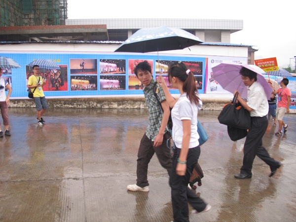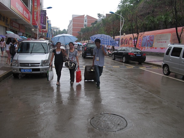 9月1日上午七点整,迎新工作人员悉数到岗开始一天的迎新工作。阴雨天气为迎新工作造成了不少的困扰,但是工作人员依然坚守岗位,迎新工作有条不紊地进行着。无论是员工还是家长,感受最深的,还是公司热情、周到、细致的接待服务。年轻而活跃的身影,奔波在校园每一处角落,担负着十分繁重的任务。迎新工作人员们即使冒着大雨依然热情不减地为新生服务,领着新生依照流程报名并带他们熟悉校园环境。他们的热情洗去了新生的劳累,温暖了他们的心窝。