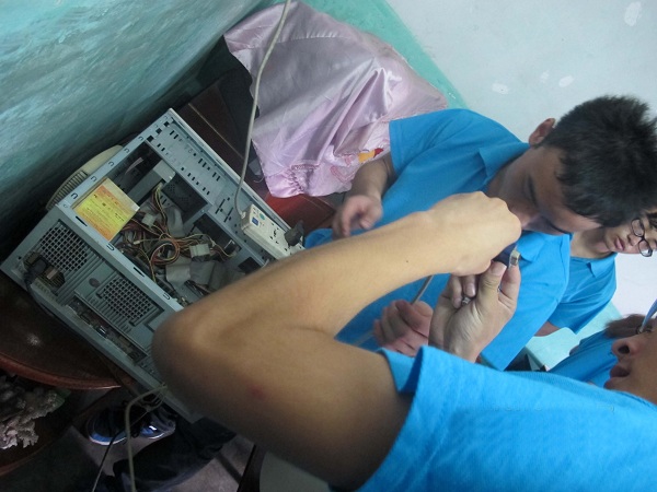 在维修的过程中团队没有抱怨,没有叫苦,有的只是那颗共同努力为当地人民服务的热心。“这么早又开始出来免费修电脑啦?”一位路过的大伯看着队员们笑着说,“我家的电脑运行太慢了,偶尔还死机,能不能到我家去看一下?”“我电脑中病毒了,能帮忙修一下吗?”“我家电脑总是上不了网。”面对居民们的询问,队员们耐心细致地对他们进行了解答,居民们纷纷邀请队员们到他们家中进行电脑维修。队员们对存在问题的电脑进行了仔细彻底的检测,并在维修的过程中向居民们讲解了一些电脑日常使用的注意事项和维护技巧等。居民们主动记下了队员们的联系方式,以便以后有问题及时请团队人员来进行维修。其中一位居民还热情地挽留前来维修的队员在他家休息,他说:“很感谢你们老员工能在酷热暑假为我们提供帮助,我们对你们表现出来的激情与热情感到高兴。”经过队员们一天的辛苦努力,将近30台电脑得到了维修。