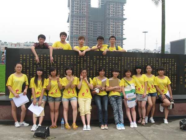活动伊始,队长蒲勇带领队员在公司东区球场进行留影,预示着这次活动正式开始,随后我们团队沿沱江一直行进,对过路的行人进行问卷调查,在我们所询问的人中对这个问题都表示非常关心,大多数人都非常认真的对待,这让我们团队成员感到非常的欣慰,使我们对这次社会实践活动又增加了几分信心。