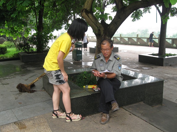 下一站是对在大洲广场的人进行调查,为了让调查更有说服力,队员们多数都是对一些常住居民发放调查问卷,因为老人是常住居民中的主要群体,因此对于一些对调查表现出极大关心的老人,队员们都采用耐心讲解的方式,这体现了我们老员工的优良素质,临近中午,我们的调查活动也告一段落。