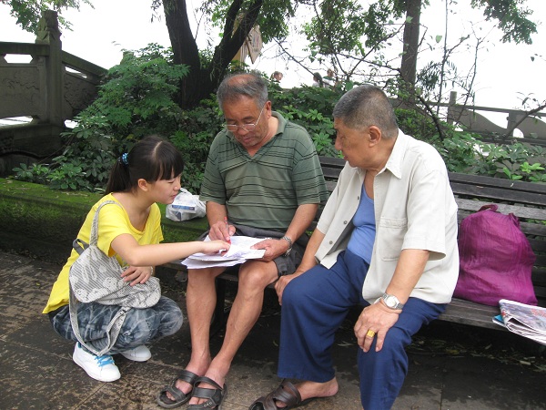 经过各种紧张的筹备活动后,关于城市居民生活水平以及城市建设环境的问卷社会调查活动于7月7日8:00在大千故里、美丽甜城正式启动。在队长蒲勇的带领下,队友们为达到调查的目的,走访了内江的各个地方,对不同年龄、不同工作的人进行了调查。