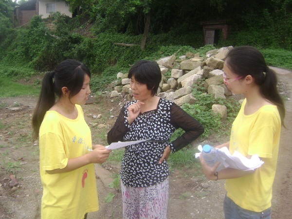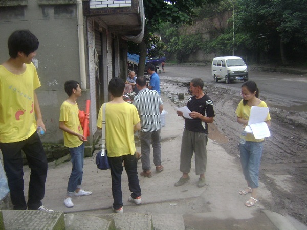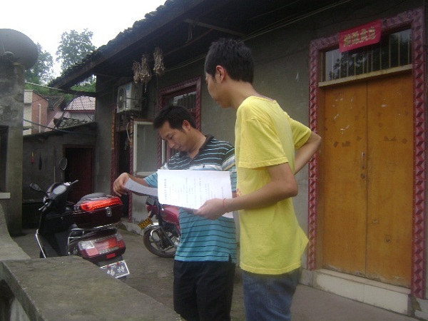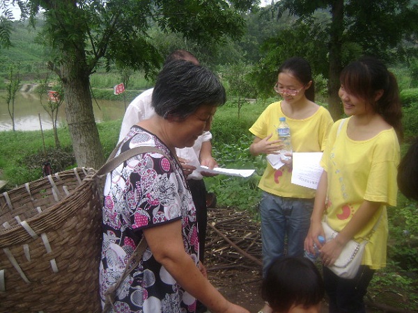在公司门口举行了简短的出征仪式之后,我们乘上了等候已久的公共汽车,前往我们此次实践之行的第一站——胜利镇。胜利镇的交通不是很发达,下车后步行了近半个小时,才到达目的地。村民们对我们深感好奇,刚进村就有人主动过来询问。经过我们的讲解,更多的村民围了过来,仔细的向我们了解我们普及的知识。我们也一一耐心并且仔细的给他们讲解。与村民相处的非常融洽。