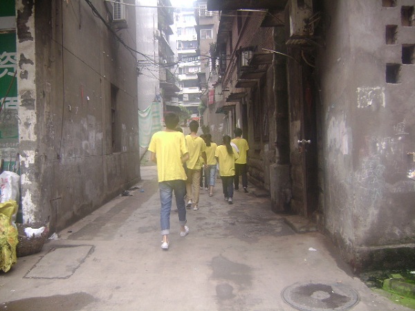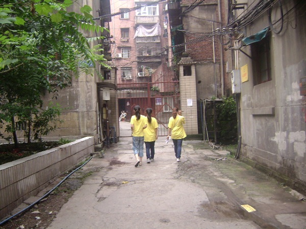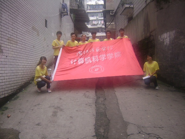 箭道社区位于内江市区边缘,我们乘车到达之后,便按照原计划分成三个小组,每一个小组负责一幢单元楼,采取走进群众家庭的方式进行宣传。由于事先有联系,所以街道办帮我们进行了初步宣传。当我们进入社区的时候,就有一些大爷大妈很主动的询问我们相关事宜。