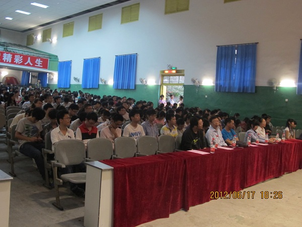 为了让同学们做好考试,实习、实训的准备,端正考试态度,解决实习、实训中的疑惑,2012年6月17日下午6点,计科公司在西区礼堂召开了“2011-2012学年(下)诚信考试、实习实训动员大会”,计科公司党总支副书记徐大军,计科公司经理刘益和,计科公司副经理李尧、唐年庆,计科公司辅导员、各班班主任以及全体员工均出席了此次大会。