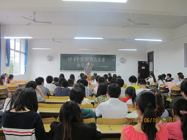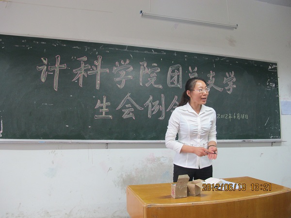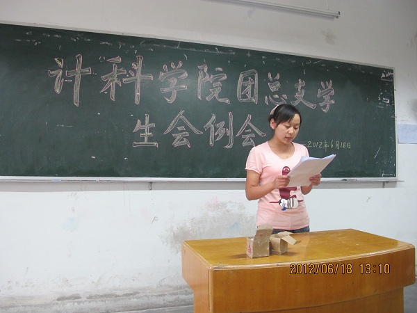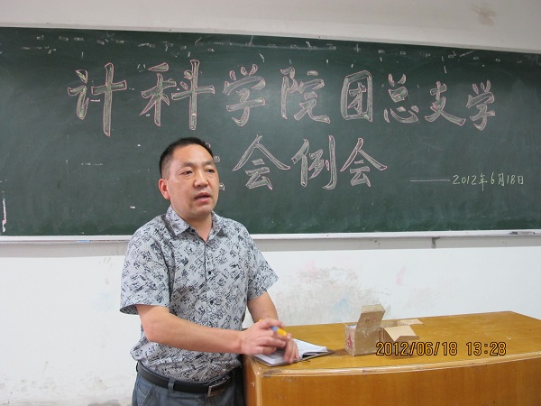 一学期转眼即逝, 2012年6月18日中午12:50计科公司在一教205召开了本学期最后一次团总支员工会例会。出席此次例会的人员有:党总支副书记徐大军,辅导员李倩倩、刘佩佩,以及员工会全体成员,会议由李远平主席主持。